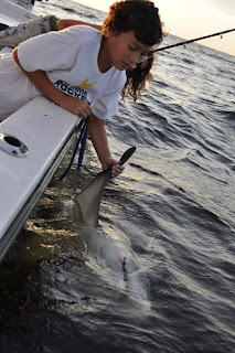 Late afternoon shark fishing has been good off the eastern shore of Charlotte Harbor. Lemons and Bulls are roaming off the bars and are hunting for dinner the last few hours of daylight. The big lemon in the picture took a cut ladyfish and took an hour and a half for the brother/sister team of Jake, age 12 and Shelby, 14 to get boat side. After the catch all three were relieved, the shark swam away strong and both the kids were whipped but smiling. We are also jumping a few tarpon on the shark lines.
