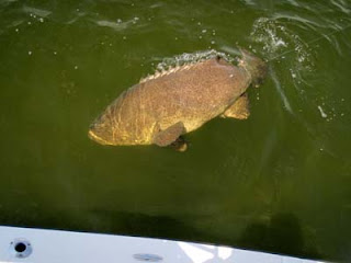 Our surprise catch of the week and maybe of the year was a huge goliath grouper that took a cut bait in open water near Bokeelia intended for tarpon. This guy hit in less than eight feet of water and just kept going almost spooling a Shimano TLD 25 before we could pull anchor and chase it down. Of course we were only using forty pound line with eighty pound leader so we weren’t exactly geared for giant grouper. There was no structure to find so he had to fight in open water and fight he did for about thirty minutes before he tired. I was fishing a group from Denmark, they like to catch big fish and this was by far the biggest fish they have seen.