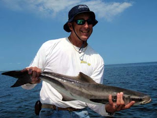 Off the beaches tarpon were eating the large live herrings off and on throughout the day. On our best day we boated four and lost count of how many got away. Other boats anchored up and fishing cut baits on bottom were also putting a lot of fish in the air. Hammerhead and blacktip sharks were constantly harassing our baits and we watched a boat next to us hook and land a big king mackerel around forty pounds that took their tarpon bait. Light winds have made it very calm off the beaches until the afternoon sea breeze kicks in.